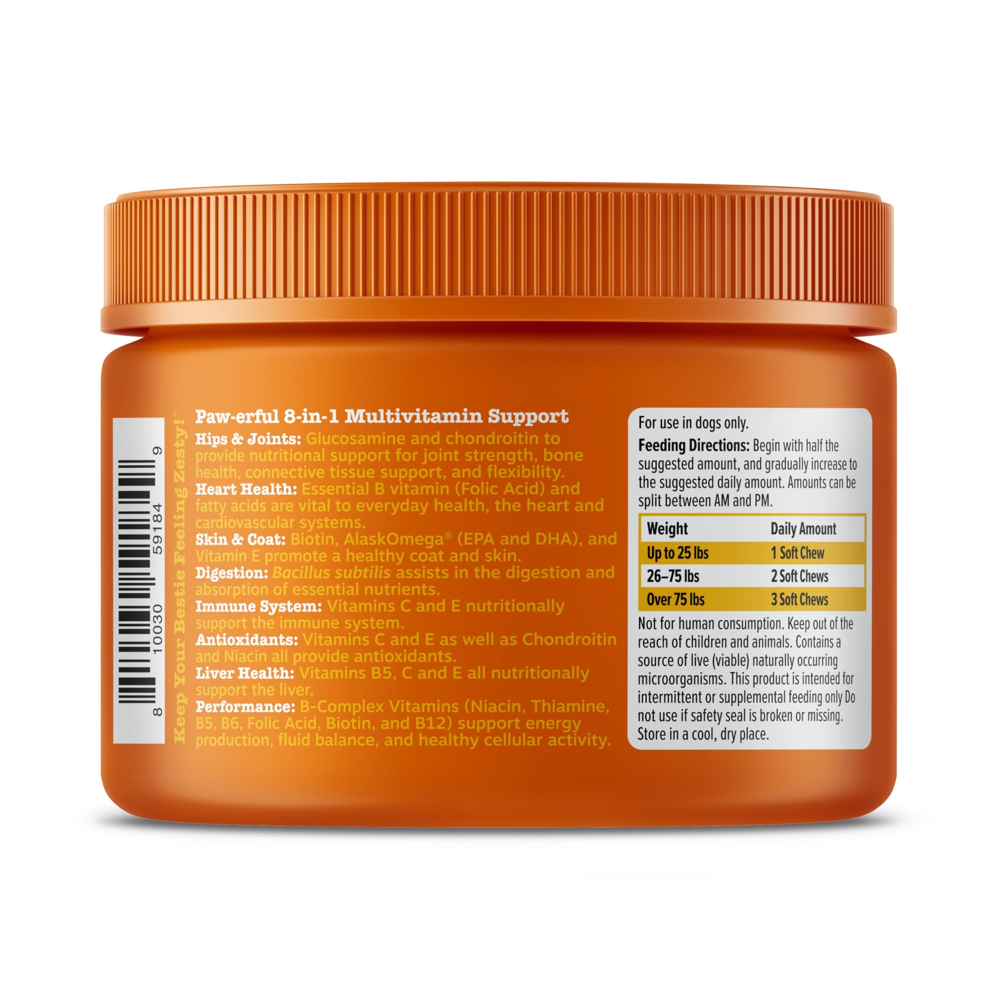 • ADVANCED 8-IN-1 FORMULA: Zesty Paws 8 in 1 Multifunctional Bites include premium ingredients for physical performance, joint support, heart, immune, skin, liver, and gut health