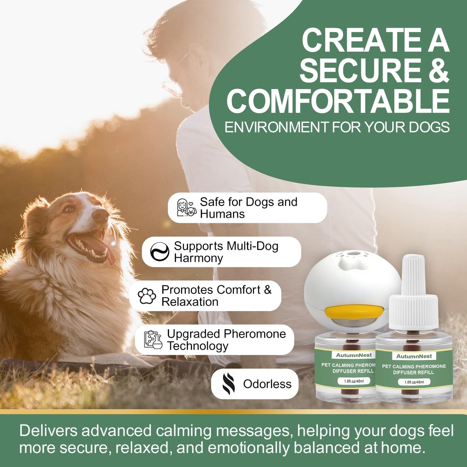 - Upgraded Night Light Design: AutumnNest calming diffuser features a built-in soft night light that creates a gentle, relaxing glow while steadily releasing its soothing fragrance. Ideal for providing dogs with a peaceful and comfortable atmosphere, especially at night