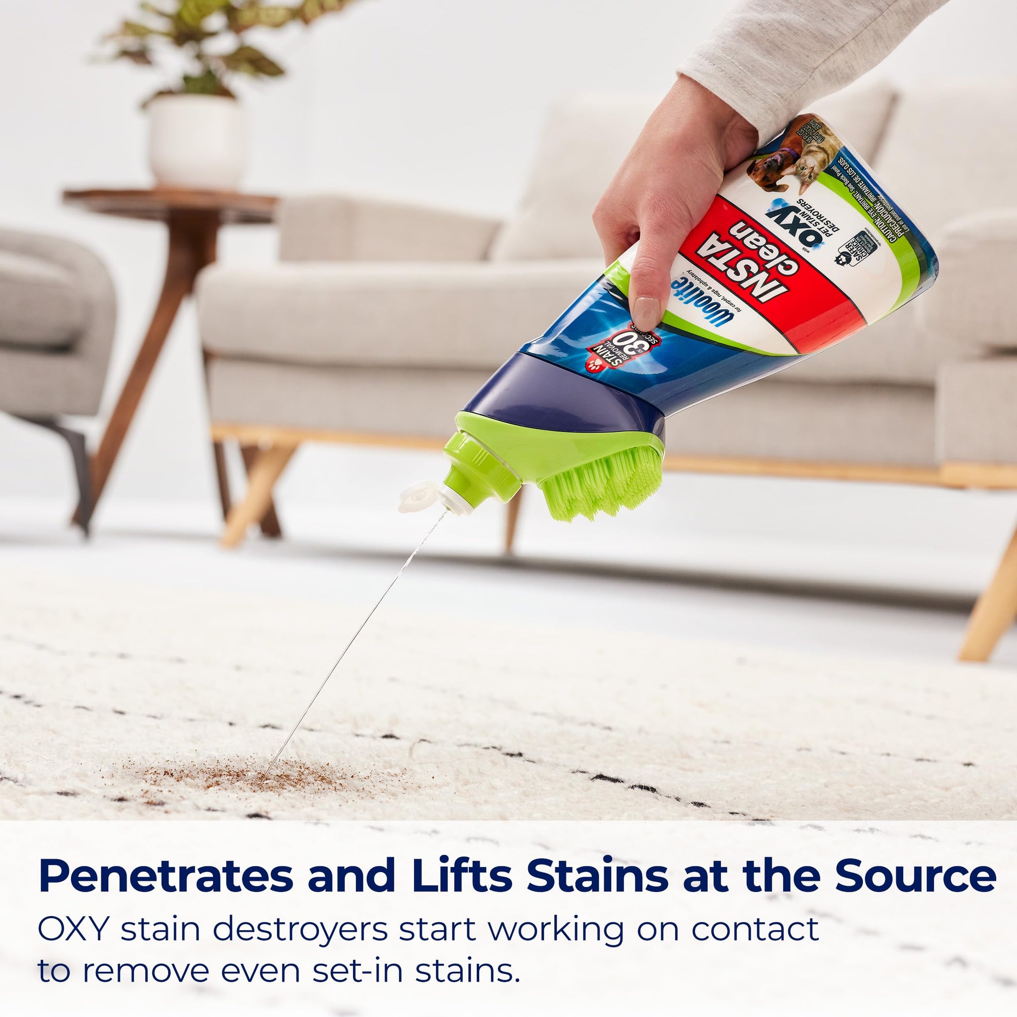 Details: Oxy stain destroyer formula starts working on contact to mobilize, lift, and penetrate the stain at the source to remove stains in 30 seconds. Instantly and permanently removes tough pet stains like trackedin dirt, mud, blood, vomit, feces and urine! Every purchase makes it possible for BISSELL to continue our support of BISSELL Pet Foundation® and its mission of saving pets in need. Since 2011, BISSELL has donated over $26 million in support of BISSELL Pet Foundation®. When you purchase a BISSELL® product, you help save pets, too. Our products are engineered to clean even the toughest messes so pets can stay at home and out of shelters.