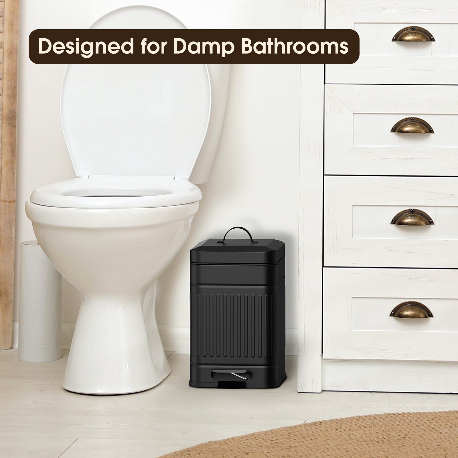 - Retro Design: This Rectangular Metal trash can is the perfect vintage garbage can specially designed with an Embossed body and matte finish; Looks sophisticated and retro whether used in farmhouses, bathrooms, bedrooms, offices, toilets, dorms, etc