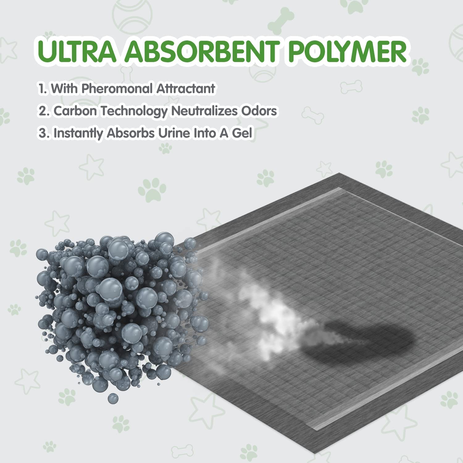 - Leak Proof Protection - Each COCOYO training pad features the PE back layer with extra border to prevent leaks. The absorbent layer absorbs liquid and turns it into gel for easy clean up.