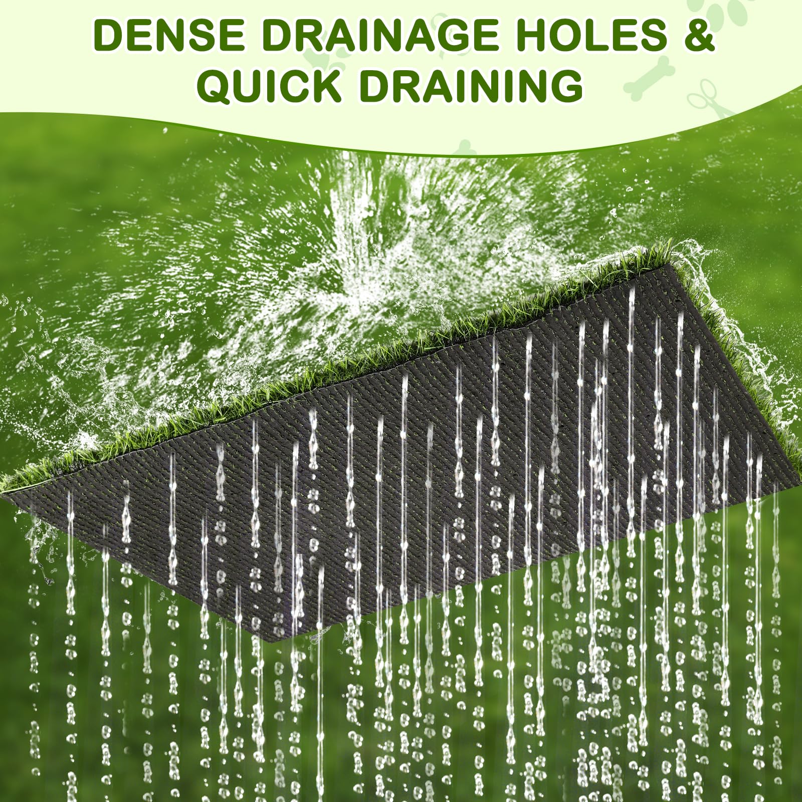 • Quick Drainage & Odorless: Our fake grass pee pads for dogs has dense drainage holes in the back with high water permeability, pearl cotton mat porous design helps urine and moisture drain out quickly, urine immediately seeps through the grass pad for dogs and pearl cotton mat to the bottom of the tray, won't stain your pet's paws, reduces odors and keeps the area fresh.