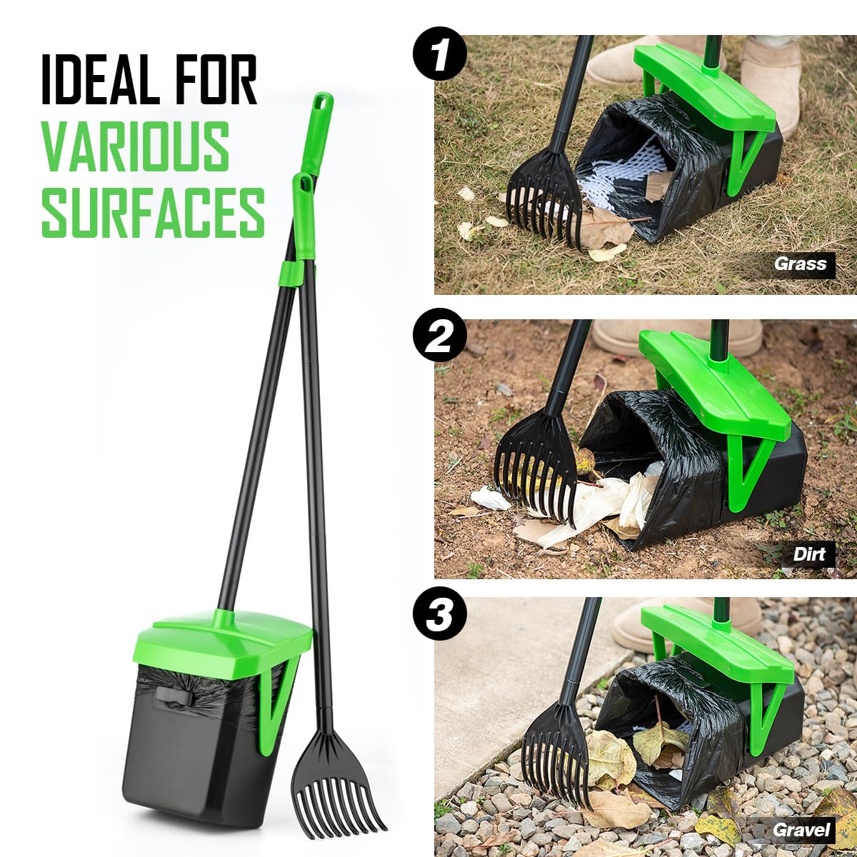 - Convenient Swivel Bin and Rake Design - Our swivel bin and rake are crafted with your convenience in mind, for easy and efficient scooping of pet waste. Bid farewell to those tiresome moments of bending over and fumbling to scoop up your furry pal's little accidents. The specially engineered swivel bin allows for a smooth and efficient scooping motion, making the task quick and effortless.