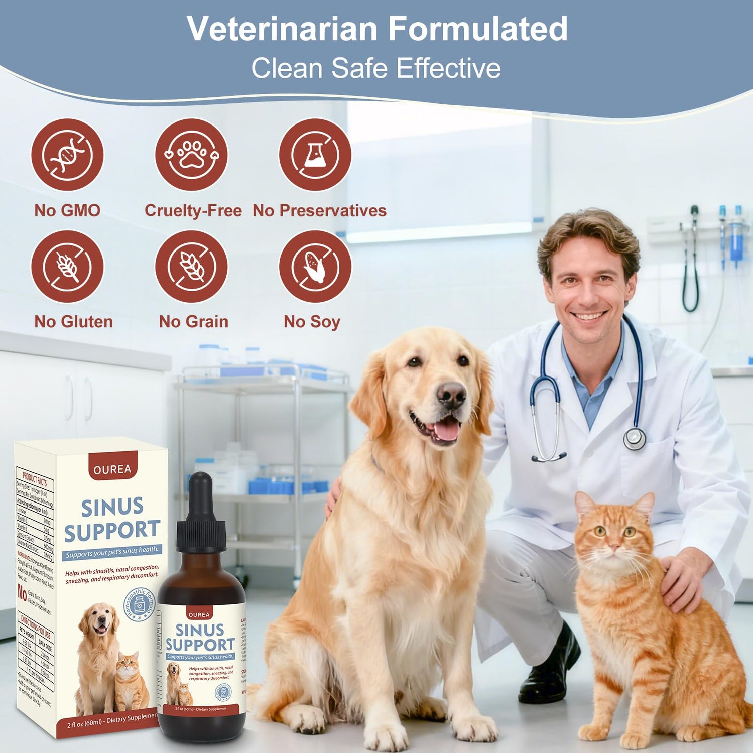 Nasal Congestion Relief Drops for Cats & Dogs, Sinus & Respiratory Support Supplement, Helps Soothe Seasonal Nose Discomfort & Maintain Clear Breathing, Immune Support