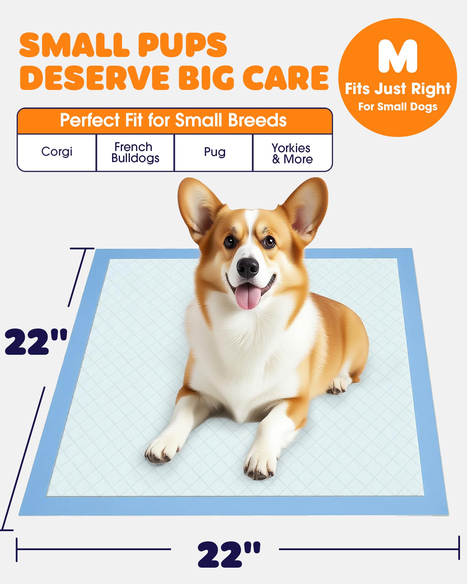 • IDEAL MEDIUM SIZE: These dog pads, measuring 22" × 22" are tailored for small dogs, including Pomeranians and Corgis. Their medium size provides generous coverage to catch spills and prevent leaks, making them ideal for use at home, in crates, or during puppy potty training sessions.
