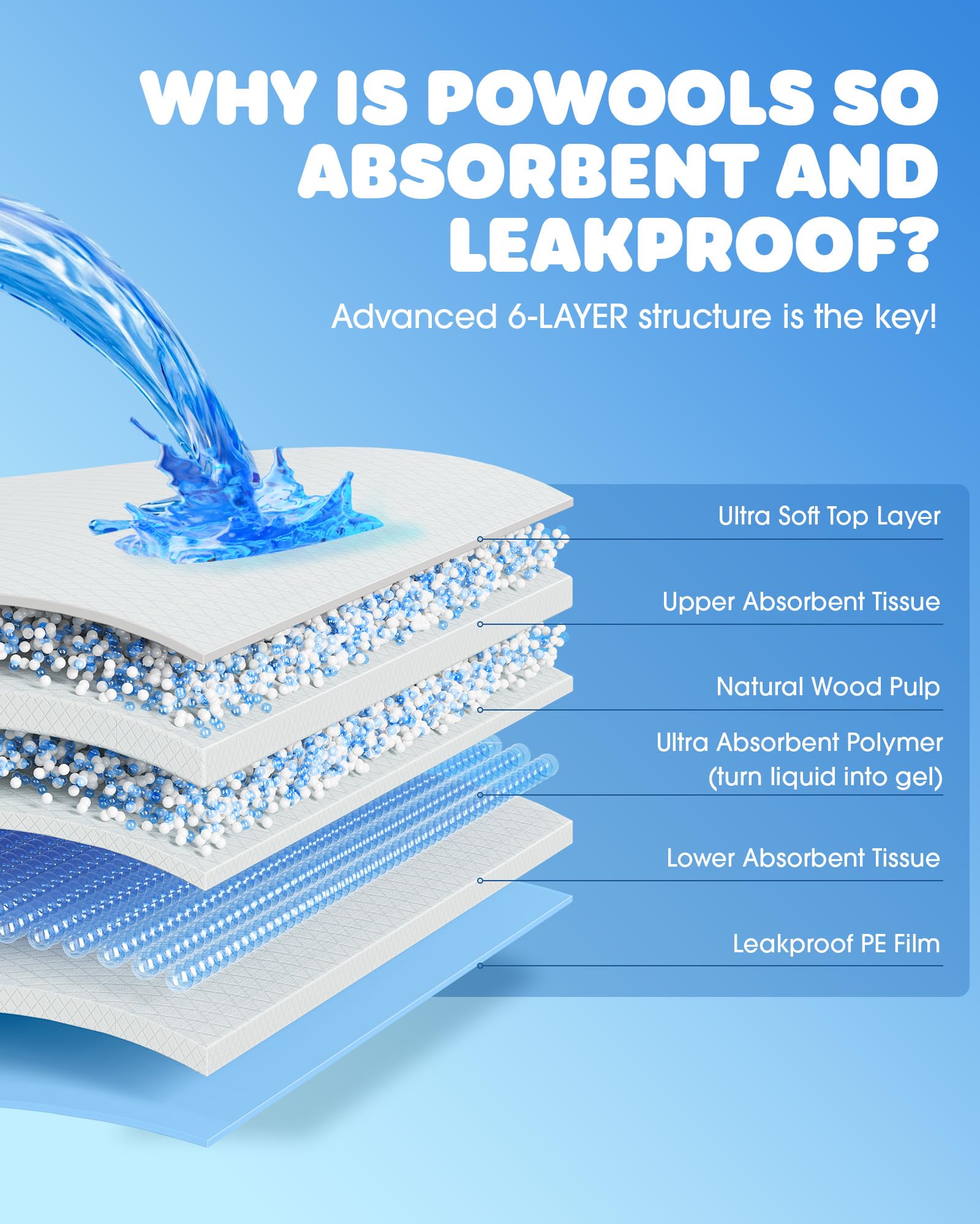 Powools Puppy Pads - Super Absorbent & Spill-Proof Pee Pads for Dogs with 6-Layer Material, Quick-Dry & Hassle-Free Potty Pads for Floors, Furniture, Vehicle, 22" × 22", 100 Packs