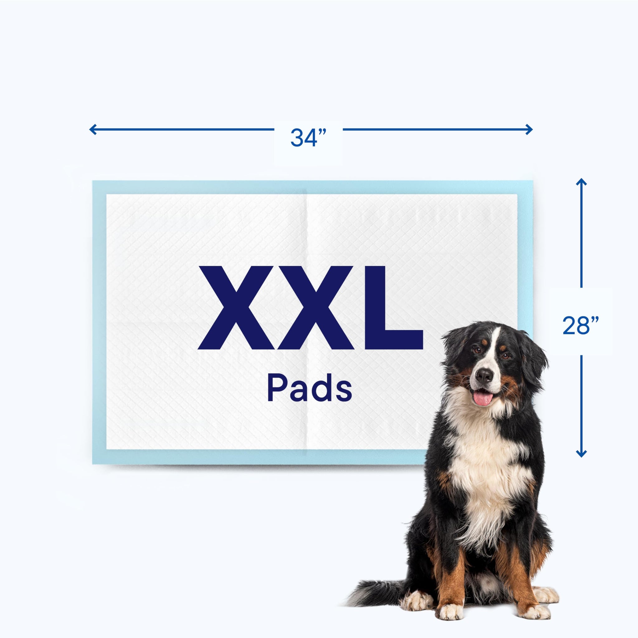 - XXL SIZE COVERAGE — Extra-large 28x34 inch pads give pets more room, ideal for bigger dogs or multiple puppies. Great for lining crates, travel carriers, and protecting rugs, couches, or play areas.
