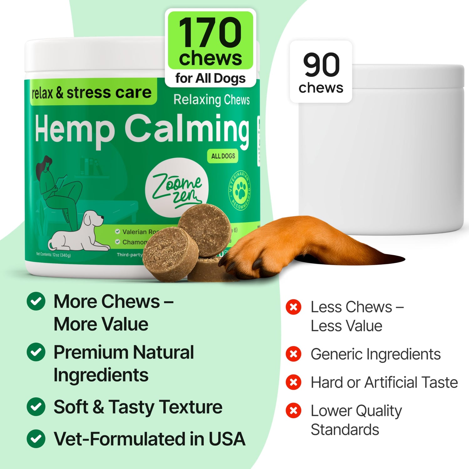 ZOOMEZEN Hemp Calming Chews for Dogs Anxiety – Dog Calming Chews for Puppies & Adults – Stress, Sleep Aid & Dog Anxiety Relief Treats with Melatonin & Valerian – 1 Pack, 170 Count, Made in USA