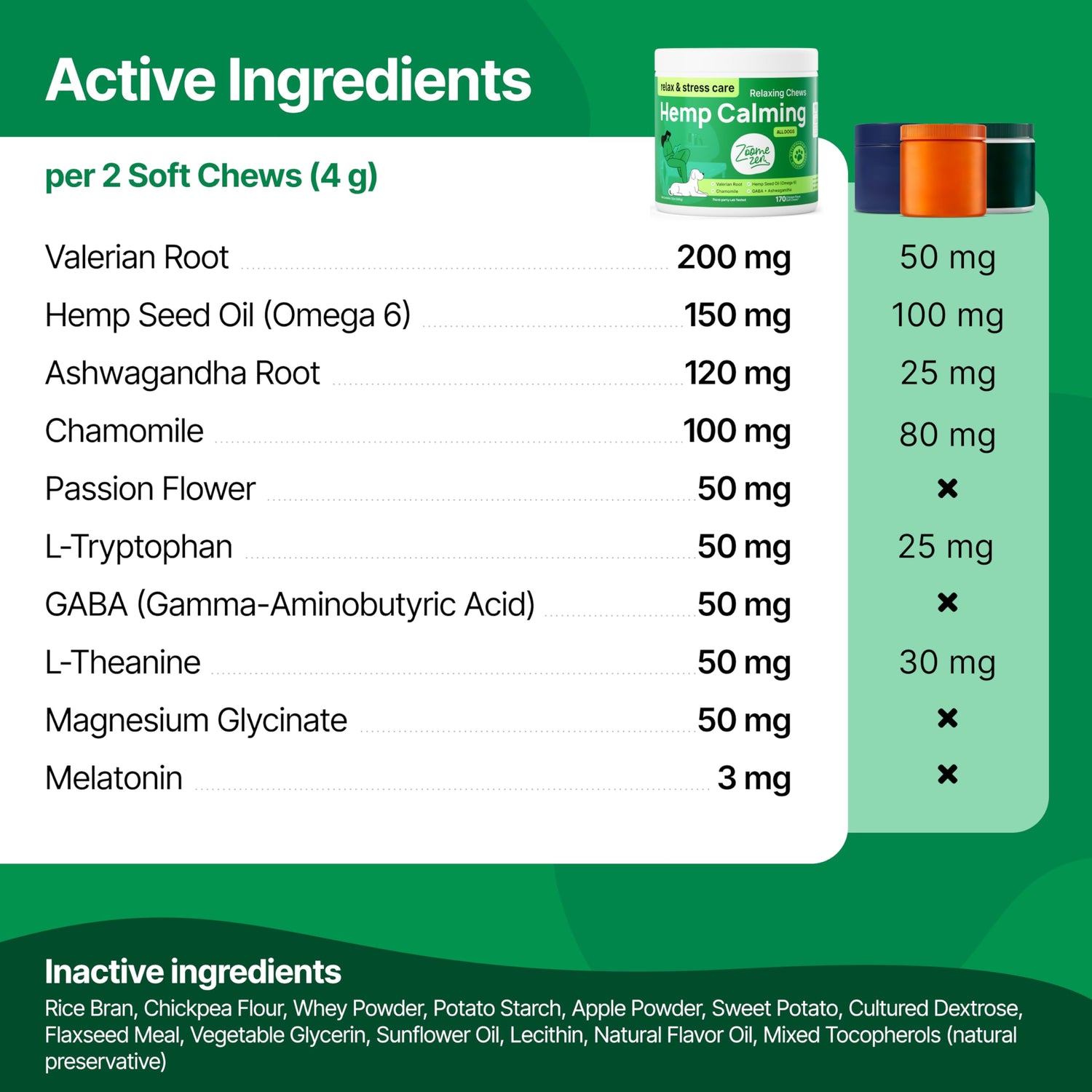 - Vet Formulated Calming Support: Zommezen hemp calming chews for dogs anxiety combine valerian, chamomile, and melatonin for dogs for safe, natural stress relief. Our dog calming chews support relaxation, sleep aid, and balanced behavior during fireworks, travel, or separation.