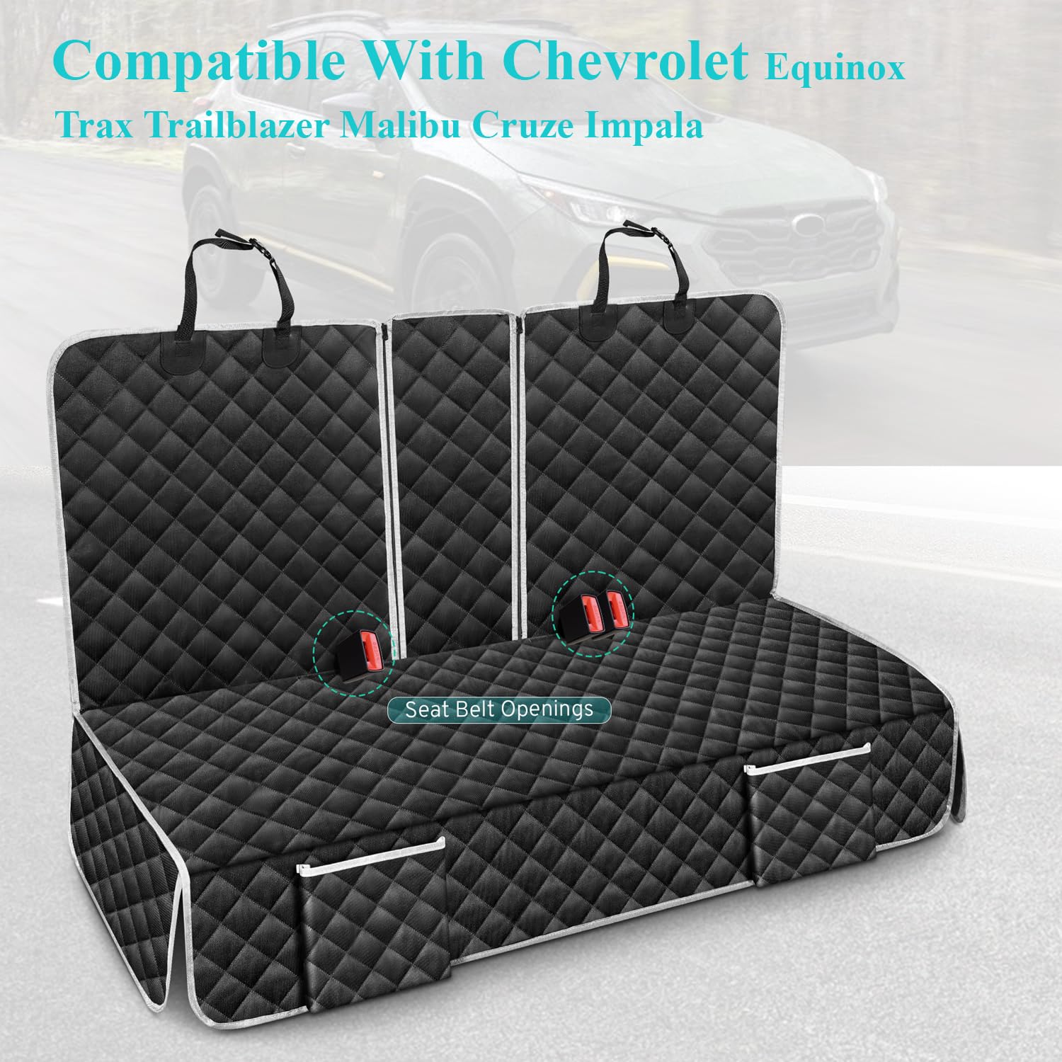 - 【Design for Chevy】:The dog car seat cover compatible with Chevy, Which is specially designed for Chevy Chevrolet Equinox/Equinox EV/Trax/Trailblazer/Malibu/Cruze/Impala and so on.