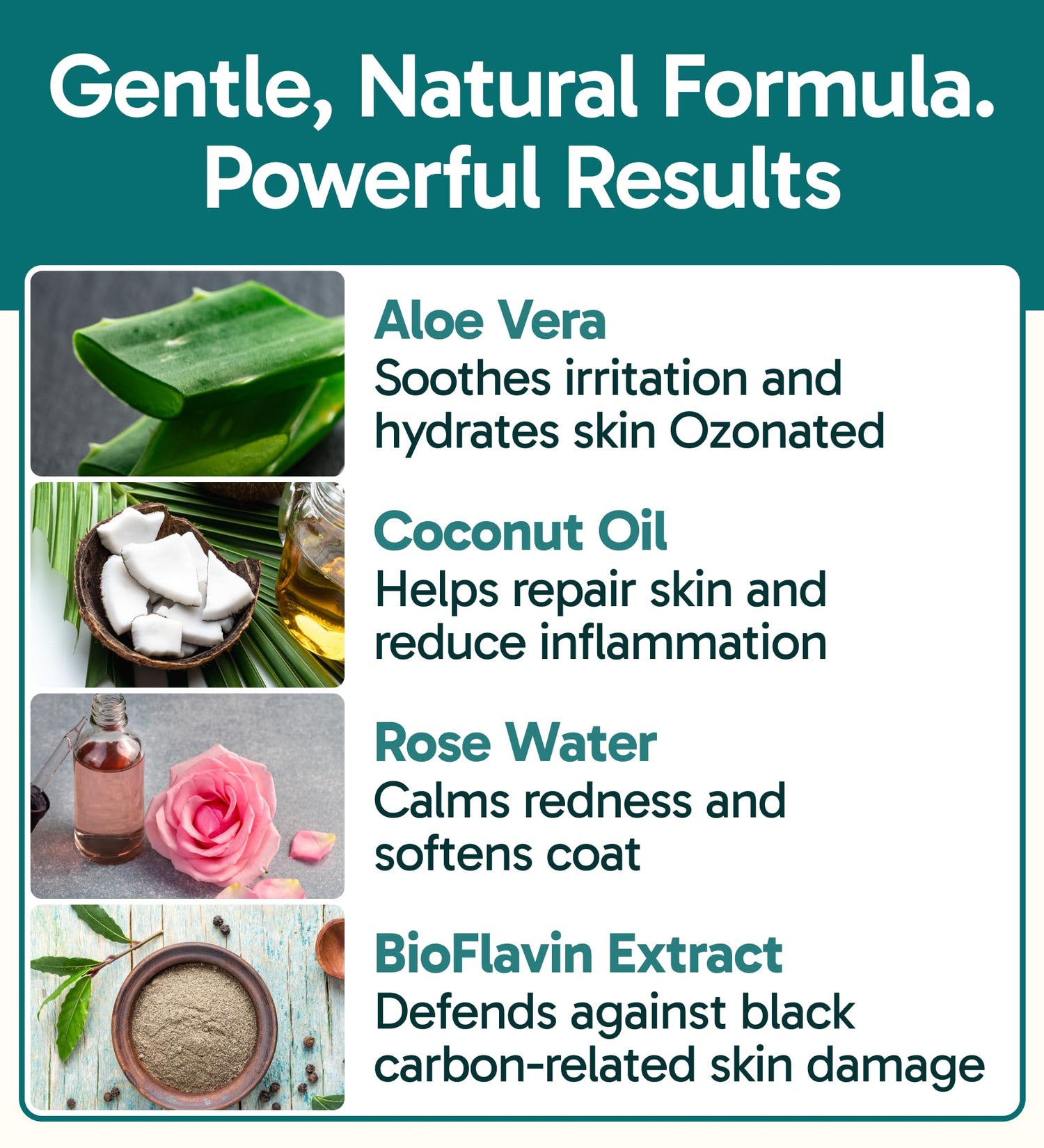 - All-Natural Soothing and Protective Formula: This hot spot spray treatment for dogs and dog anti itch spray is made with aloe vera, ozonated coconut oil, rose water, and BioFlavin Extract to naturally calm, heal, and protect irritated skin.