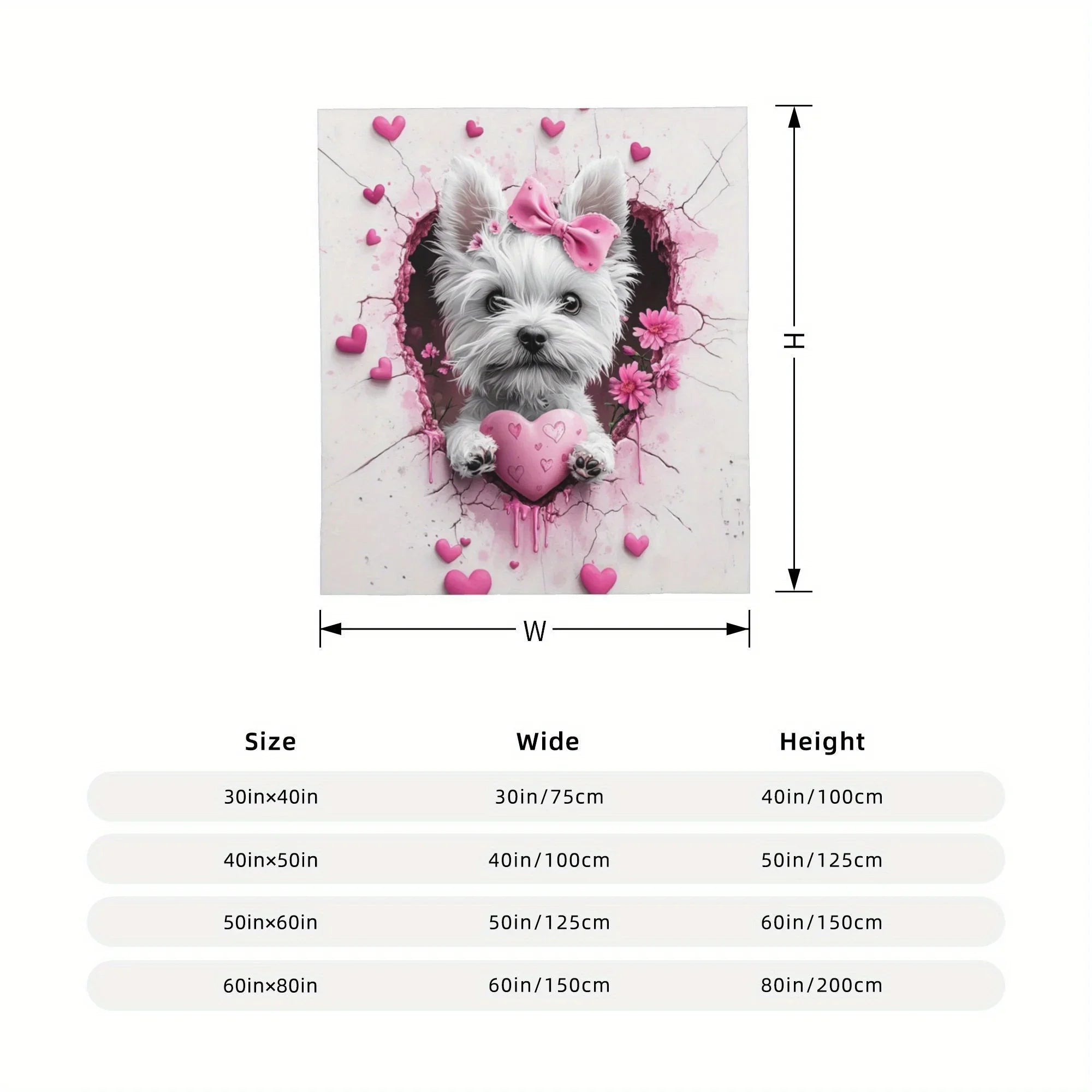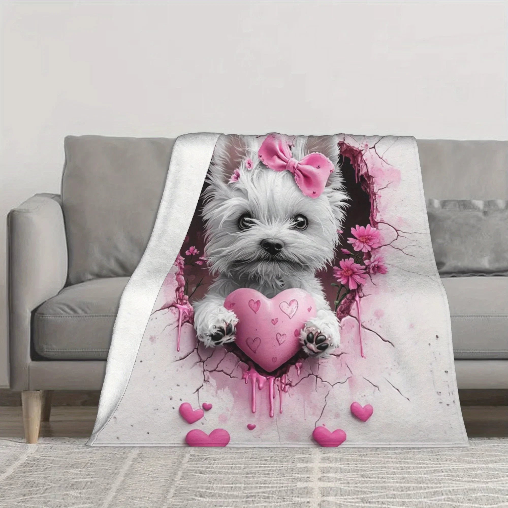 West Highland White Terrier Dog Pink Floral Heart Print Flannel Throw Blanket - Soft and Cozy Novelty Fleece Blanket for Napping