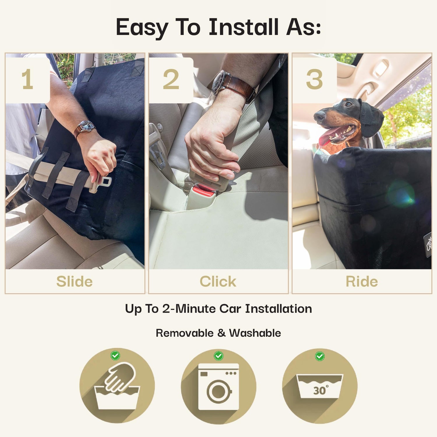 Dog Car Seat for Small Dogs, Dachshund Car Seat Booster Bed for Small Breeds β Non-Slip Base, Adjustable Straps, Washable Cover (Small Size Black)