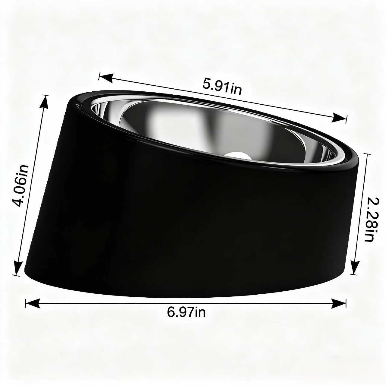 • The 15° tilting bowl has a unique asymmetrical design with one side high and one side low, making it easy to pour liquids or food. S M L three sizes, you can choose the right bowl according to your pet's size