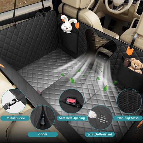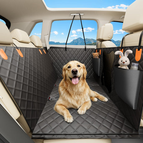 Amazon Basics Dog Car Seat Cover for Pets, 100% Water Repellent, 600D Heavy Duty, Black