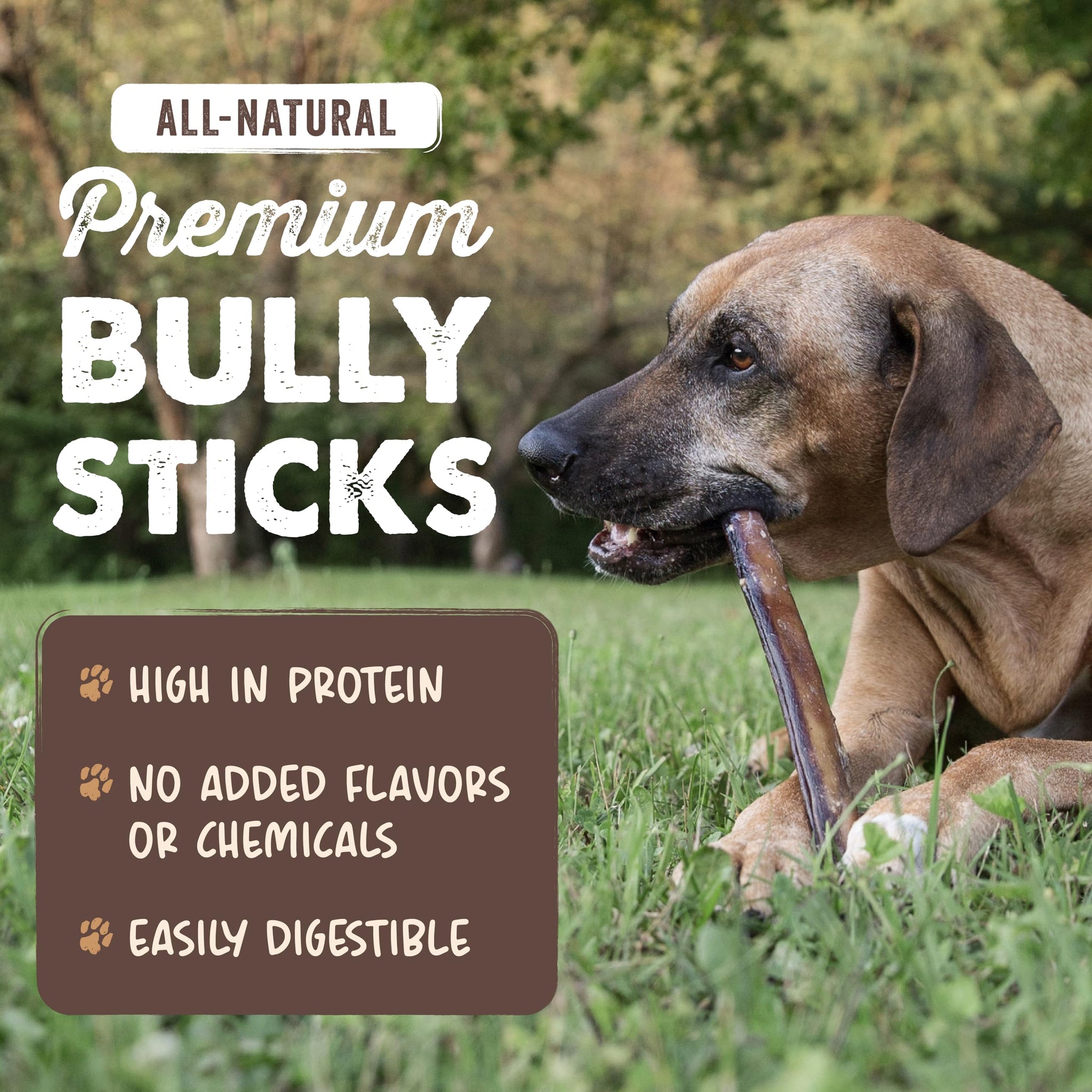 Mighty Paw Long Lasting 12" Bully Sticks for Dogs - All Natural Grass Fed Beef Chews. Lower Odor Dog Bully Sticks for Large Dogs, Medium and Small Breeds. Single Ingredient Treats