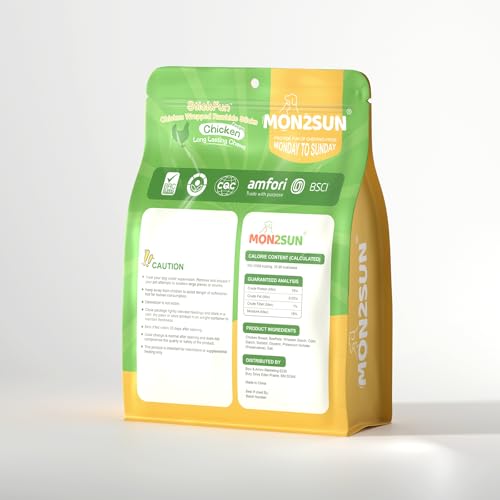 - [Natural and High Protein] The chicken rawhides are made with real chicken breast wrapped around a rawhide stick. The rawhides are of high protein, low fat.