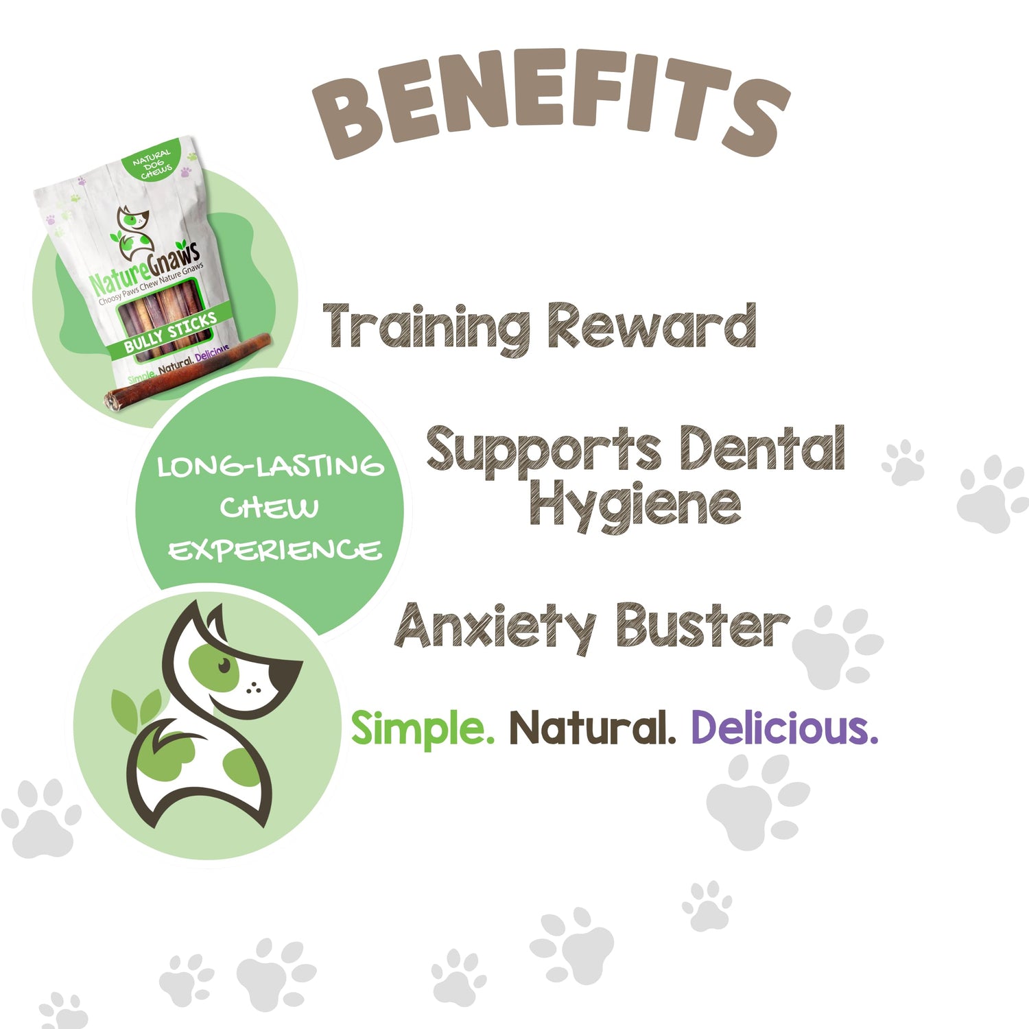 - NATURE GNAWS - As a family-run business, we are dedicated to providing 100% natural dog chews, bully sticks and treats made with responsibly sourced ingredients to ensure they are the best simple, natural, and delicious products for your beloved pups.