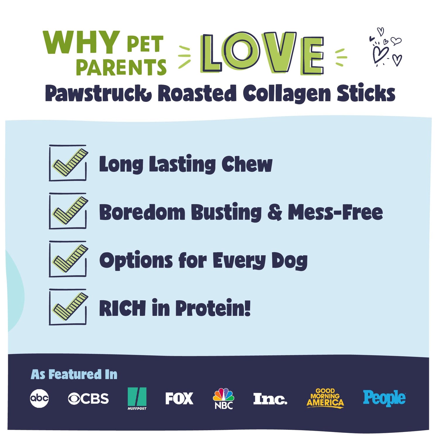 • Pawsome Health Benefits: Our Roasted Collagen Sticks are high protein, grain free, low fat, and naturally rich in glucosamine and chondroitin to support hip and joint health—plus, these slow roasted & all natural dog treats support dental health through the act of chewing!