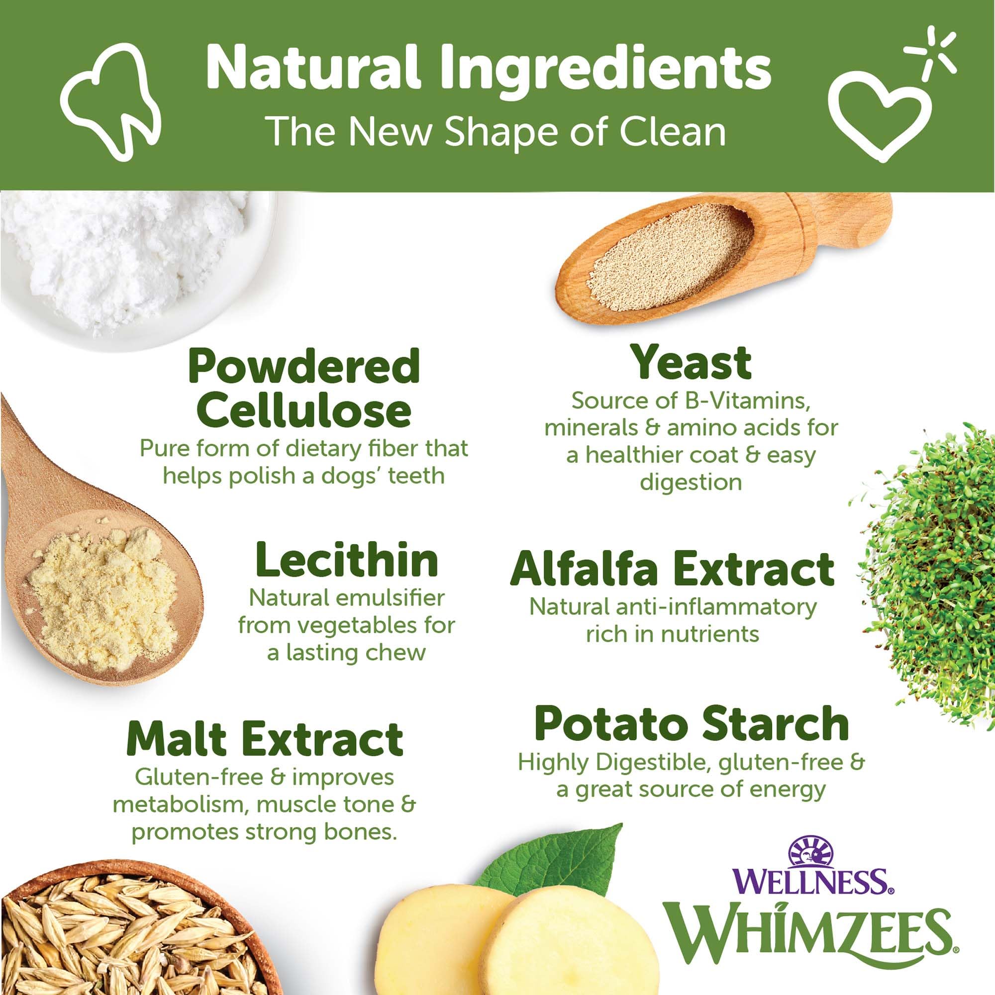 Details: Give your dog one WHIMZEES® per day and you're giving them a fun, all natural way to help clean teeth, freshen breath, and reduce plaque and tartar - all while they chew! Dental disease is the number one health issue for dogs, affecting 80% of adult dogs and 96% of senior dogs. That's why we believe it's more important than ever to take an active role in your pup's at-home dental care. What separates WHIMZEES® from the pack? Designed by our tem of pet health experts, WHIMZEES® are scientifically proven to help control plaque and tartar, improve breath odor, and decrease gingivitis. Our treats clean two times better than a leading competitor*, and deliver three times longer chew time*#. A longer chew time means a longer cleaning time - all to support your dog's dental health. You brush daily, your dog should too! *Based on studies of comparable products conducted by an independent kennel. #Excludes Veggie Sausage, Veggie Strip, and Puppy varieties.