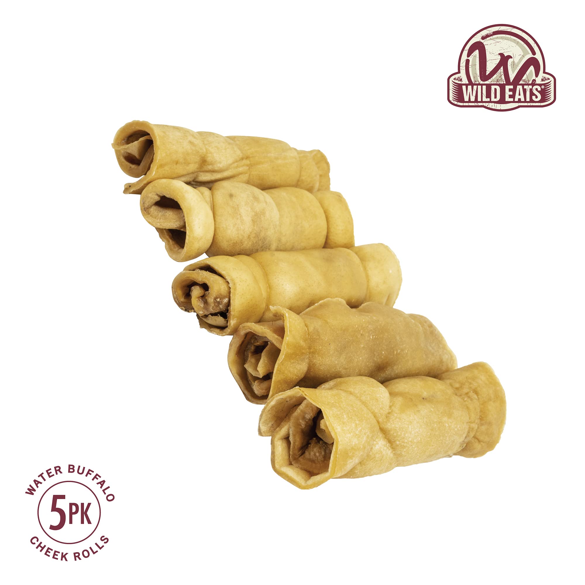 - HEALTHY GRAIN FREE DOG TREAT: Our Water Buffalo Cheek Rolls are RAWHIDE FREE dog chews; A thick, durable, low fat, high protein dog chew that is a lasting alternative to bully sticks, pig ears for dogs, and antlers for dogs; Add to your dog supplies or to treat your aggressive chewer