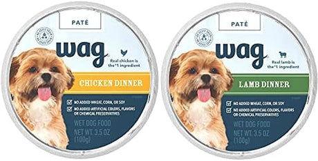Amazon Brand β Wag Wet Dog Food Cups, Chicken & Lamb Pate Variety Pack, 3.5 Oz, Pack of 24