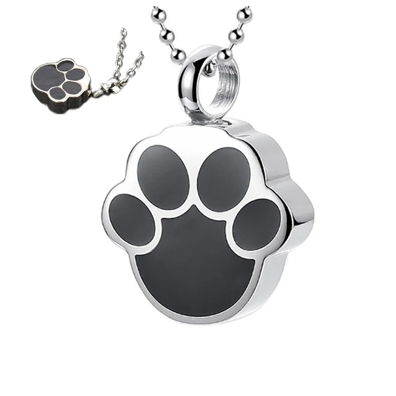 1PC Pet Dog Paw Charm Memorial Funeral Urn for Ashes Animal Necklace Stainless Steel Pendant Cat Ashes Holder Cremation Keepsake