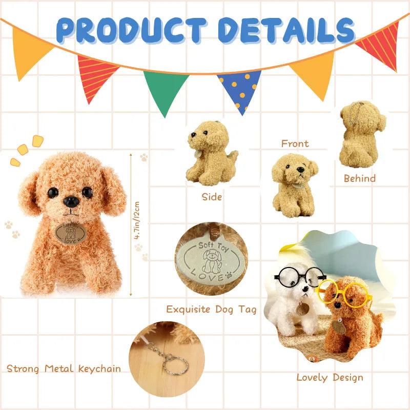 The design size of each plush puppy is 4.7 inches (12 centimeters), lightweight, and small in size, suitable for carrying around.