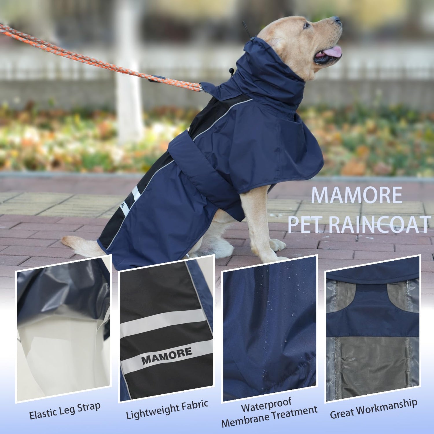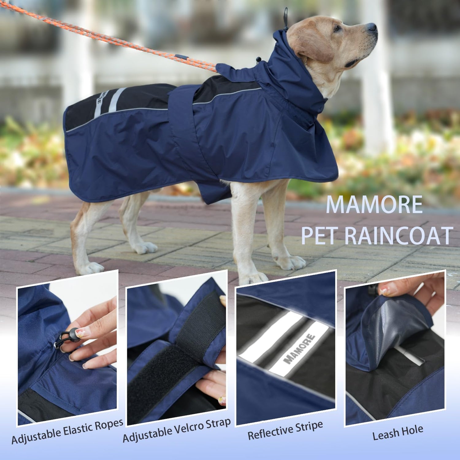 Adjustable Dog Raincoat, Waterproof Dog Rain Jacket for Small Medium Large Dogs,Reflective Lightweight Pet Rain Coat with Leash Hole (Navy&Black, Medium)