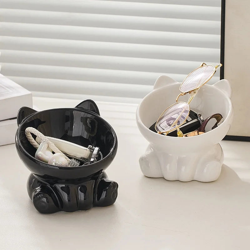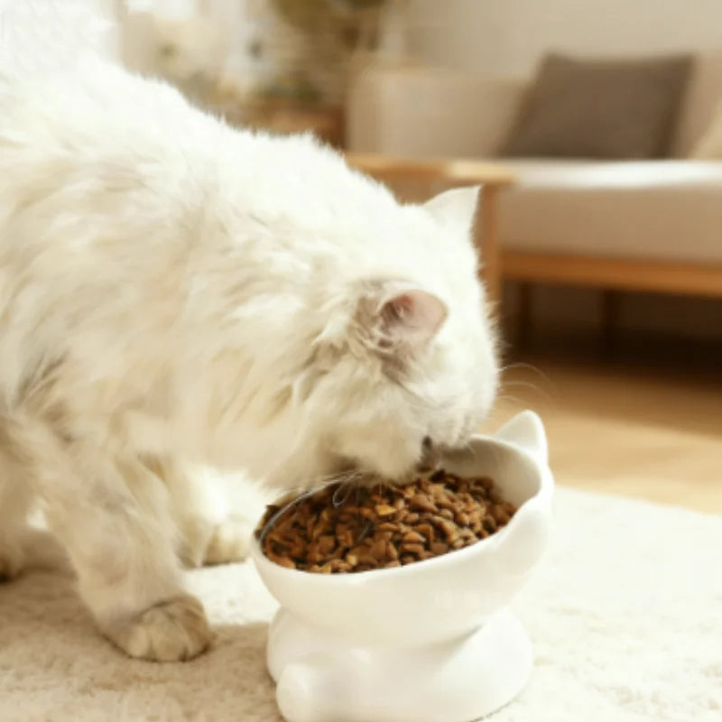 Cat Bowl Pet Accessories Ceramic Diagonal High Feet Cute Protection Ce – Floppy Fish Dog Toy