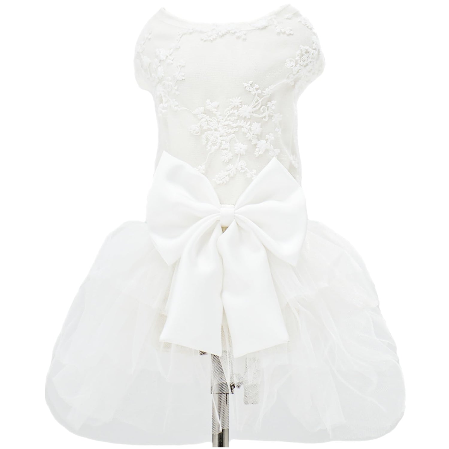 Dog Dress Wedding Outfits, Princess Lace Tutu Strappy Skirt for Female Puppy Small Medium Dogs Girl Cats Costume (Embroidery Dress, Medium) is backordered and will ship as soon as it is back in stock.