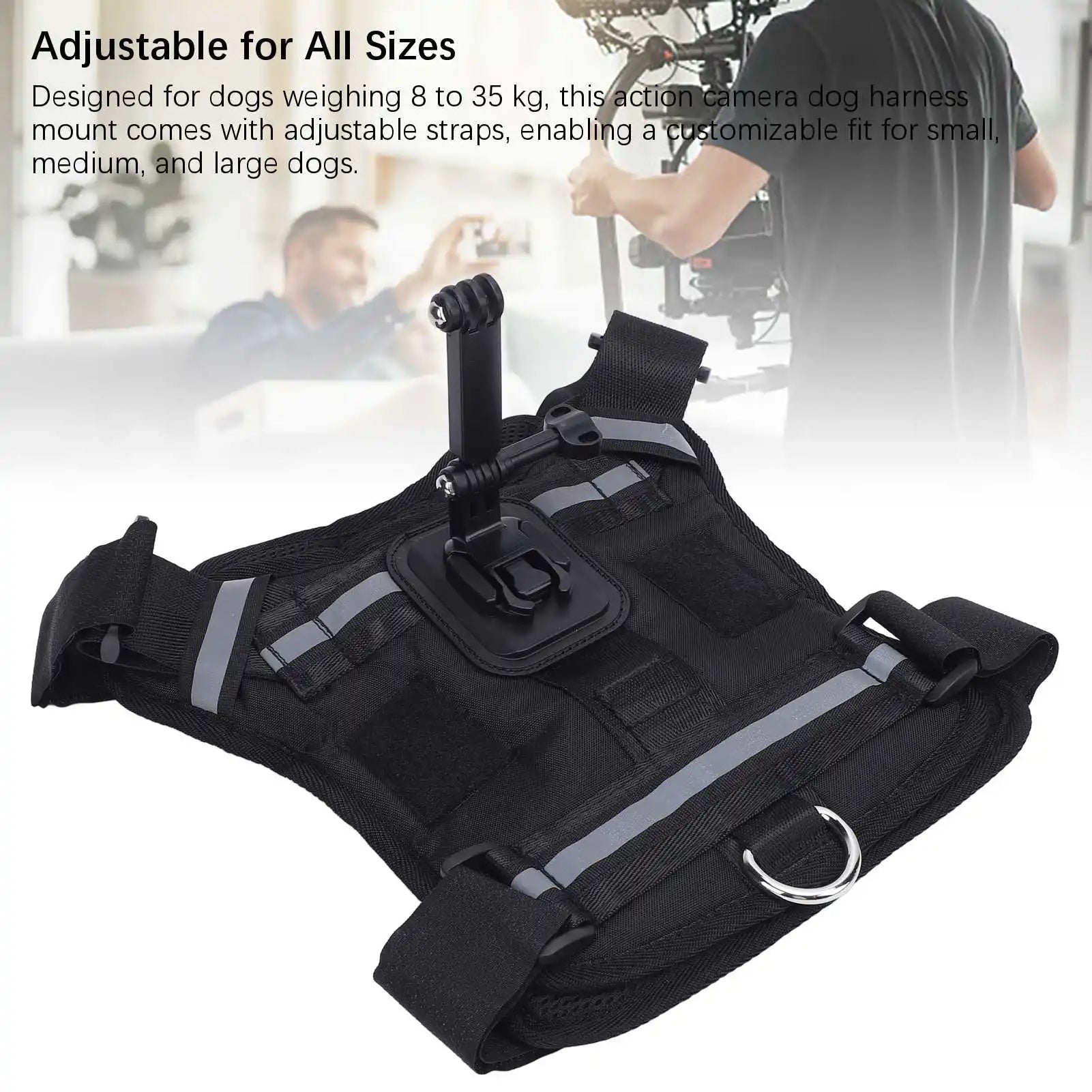 1. Comfortable Padded Design: Featuring a soft, streamlined padded structure, the dog harness vest is skin friendly and comfortable for dogs to wear, ensuring safe fun and happy play time.2. Adjustable for All Sizes: Designed for dogs weighing 8 to 35 kg, this action camera dog harness mount comes with adjustable straps, enabling a customizable fit for small, medium, and large dogs.