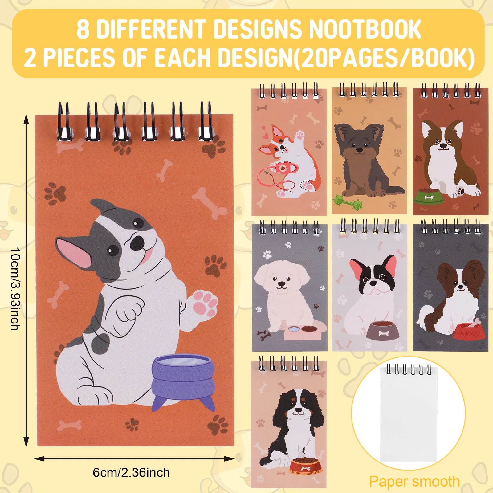 Complete Package: You will receive 16 dog themed spiral notebooks, 8 designs, 2 notebooks per style, 16 adorable dog pens, and 100 playful dog sticker sheets. Designed as versatile dog party favors and puppy party favors, this abundant assortment of dog themed party favors ensures endless fun for daily use, sharing with friends, or elevating celebrations like dog themed birthday parties or puppy birthday parties.