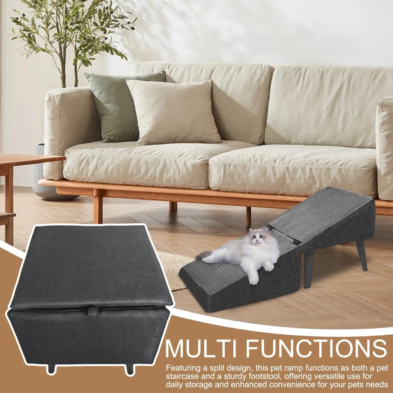 3.Multi-functional Design: This pet ramp's split structure provides double advantages, functioning seamlessly as a pet staircase and a sturdy footstool, while integrating space-saving daily storage for ideal versatility