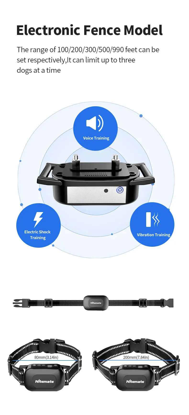 Electronic Fence Model: The range of 100/200/300/500/990 feet can be set respectively