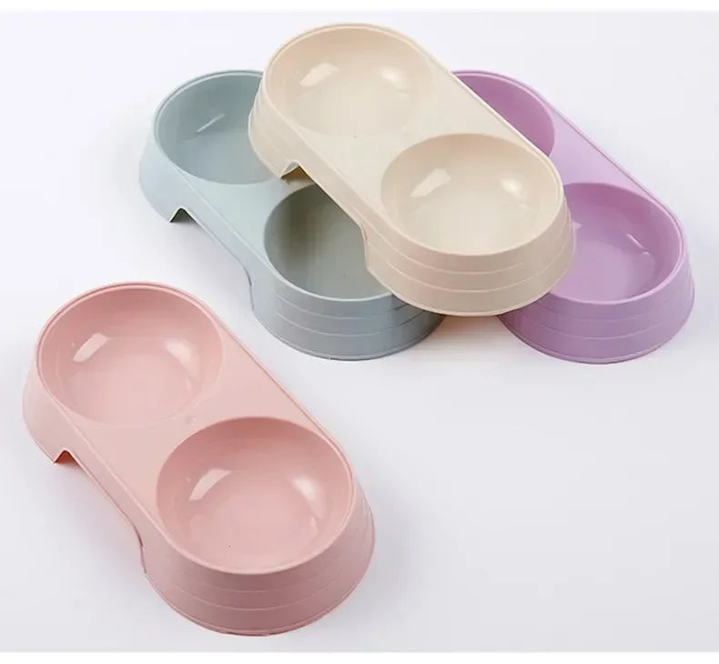 Dogs and Cats Feeding Double Bowl Macarons Plastic Feeding Bowl Double Bowl Pet B owl Drinking Water Feeding