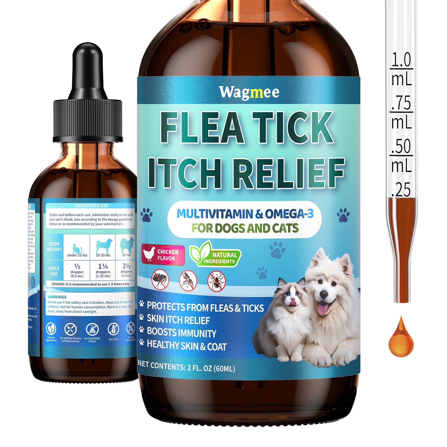 - Savory Chicken Flavor Pets Love: Made with a delicious natural chicken flavor, cats and dogs alike enjoy their daily dose—no resistance, no waste. Turn essential care into a tasty routine that keeps your pets happy, shiny, and comfortable every day.