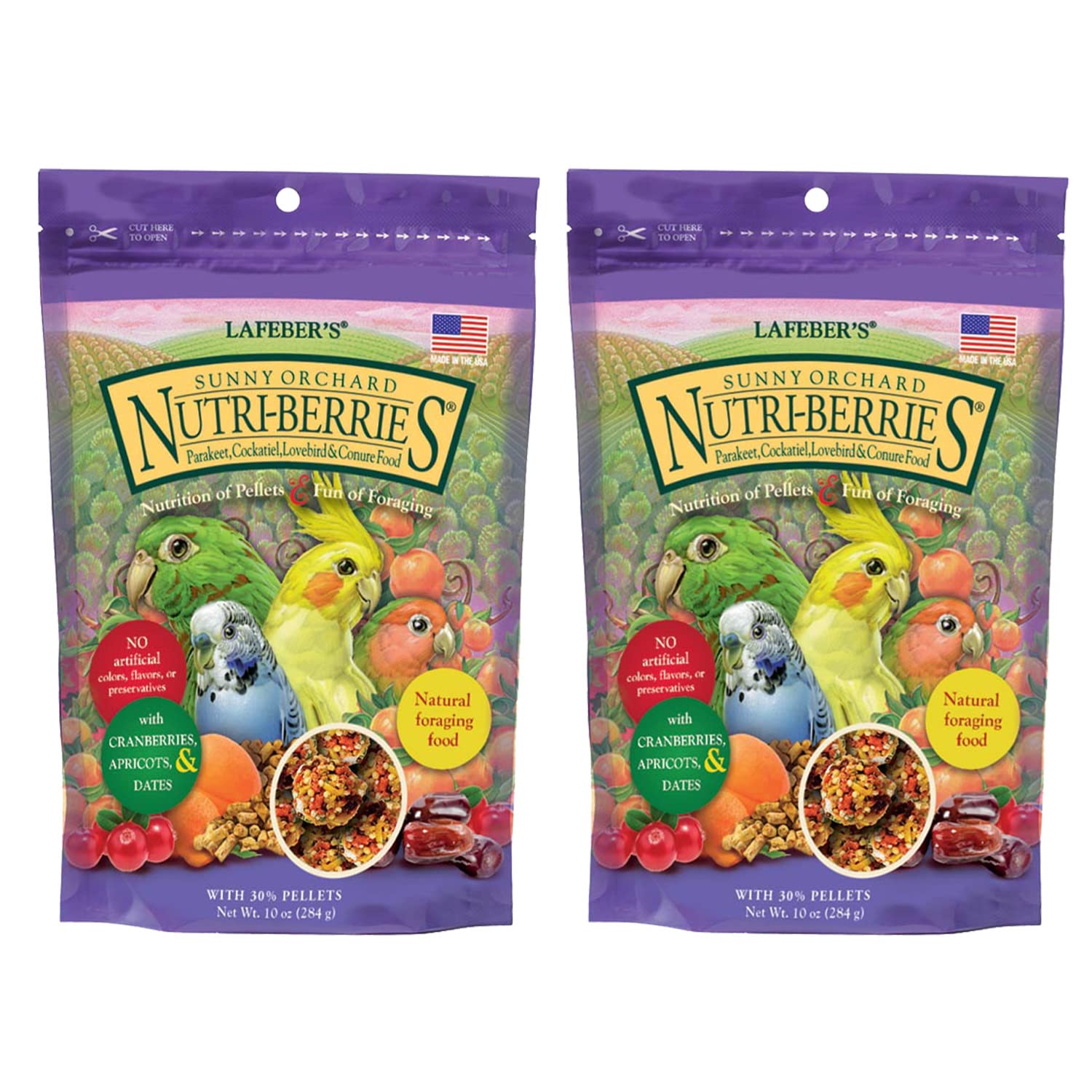 LAFEBER'S Sunny Orchard Nutri-Berries Pet Bird Food, Made with Non-GMO and Human-Grade Ingredients, for Cockatiels Conures Parakeets (Budgies) Lovebirds (Sunny Orchard 10 oz Pack of 2)