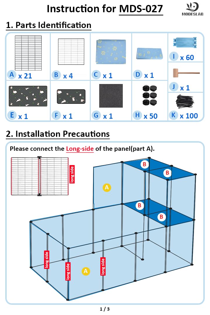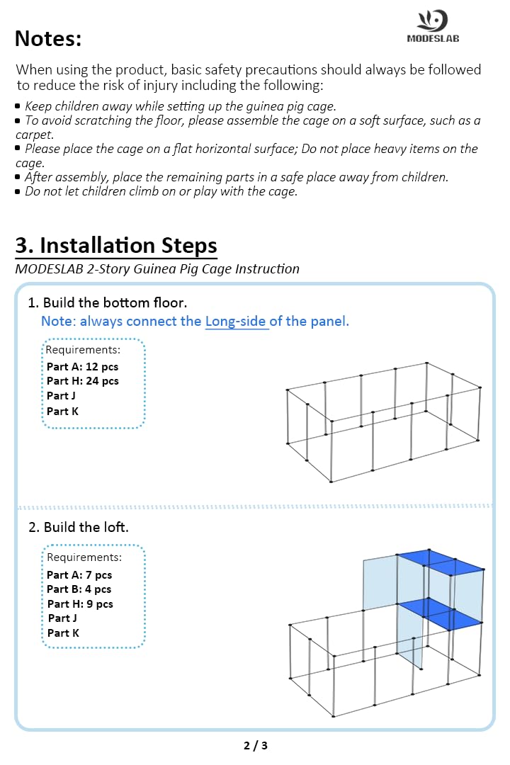 - Cage Dimension: Measures at 24 in(W) x 48 in(L), the large guinea pig cage cover an area of 8 sqft(approx), it's easy to assemble, simply follow the instruction and take few minute to finish
