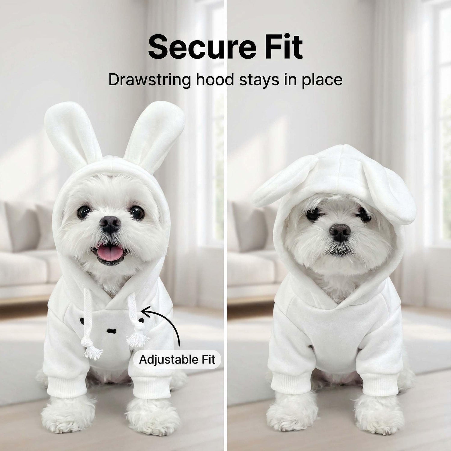 - Designed for Convenience:This dog rabbit costume features stretchy cuffs and an easy-on, easy-off style. The adjustable drawstring hood allows you to secure the bunny ears firmly in place, so your pet can play and move around without the hood slipping off