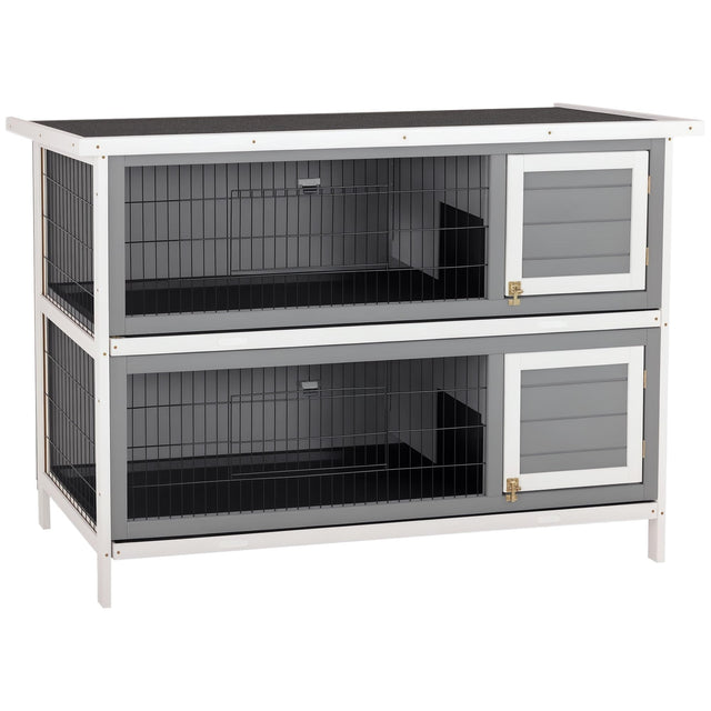 PawHut 54" 2-Story Large Rabbit Hutch Bunny Cage Wooden Pet House Small Animal Habitat with Lockable Doors, No Leak Tray and Waterproof Roof for Outdoor/Indoor Dark Grey