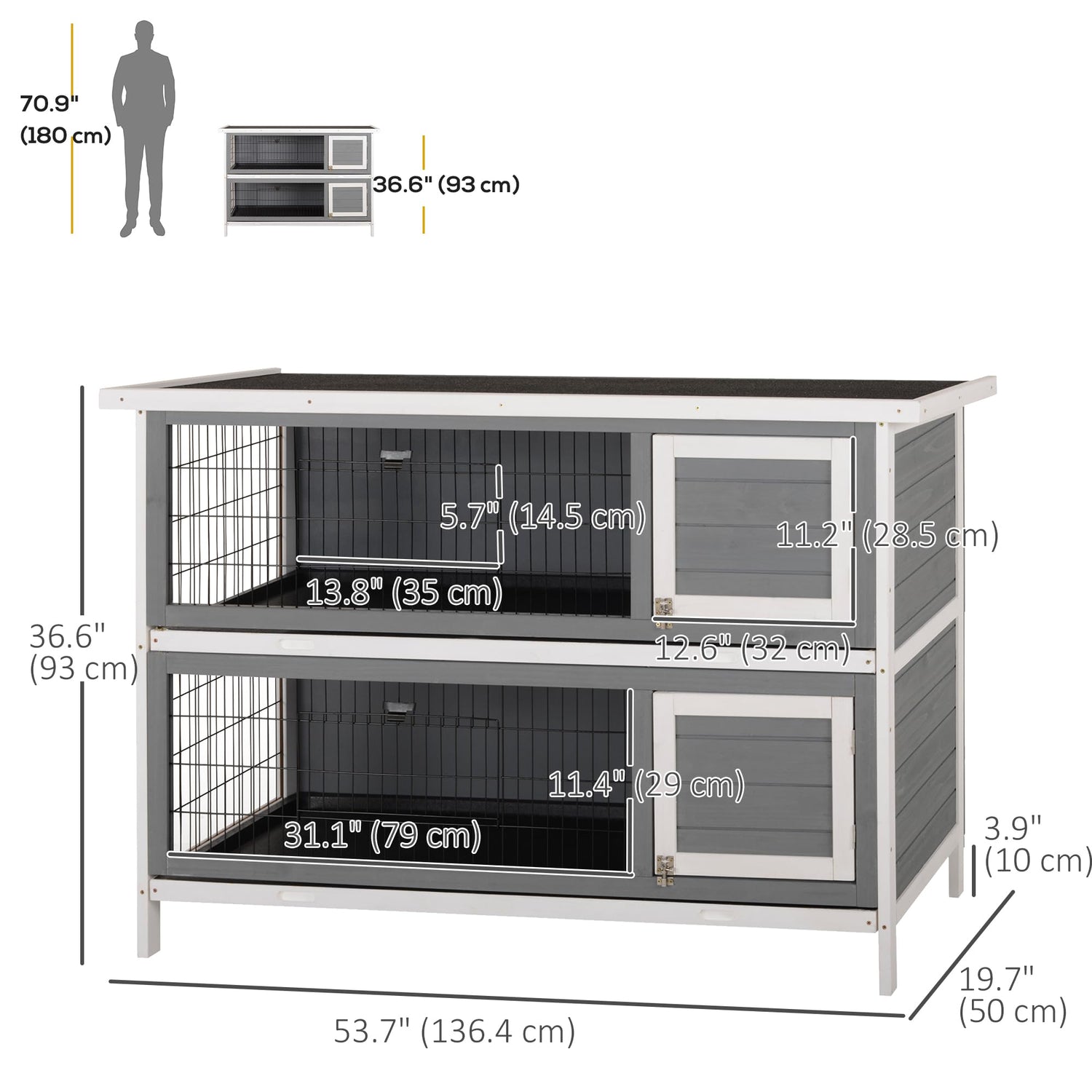 - Two Level Design: This 2 level bunny hutch has an upper level to give your pets a place to rest, while the lower level provides a more open area for your pets to play.