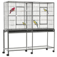 PawHut 65" Double Rolling Metal Bird Cage with Divider, Large Parrot Cage for Parakeet, Canaries, Lovebirds, Budgie, Finch, with Detachable Rolling Stand, Storage Shelf, Wood Perch & Food Container