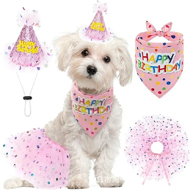 Pet Birthday Party Set: Skirt Hat Bowtie for Dogs