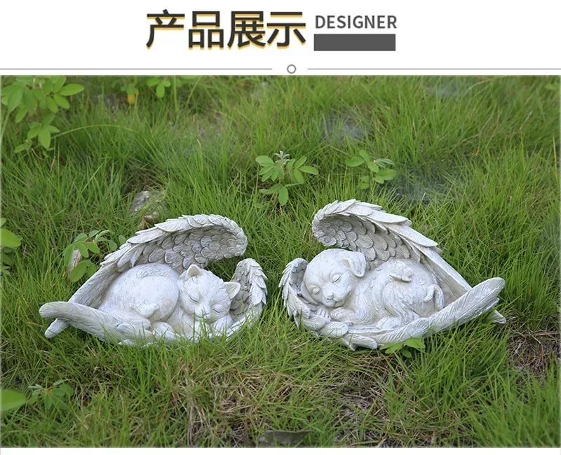Pet Dog Cat Tombstone Personalized Memorial Stone Resin Statue Creative Angel Dog Cat Ornament Pet Tombstone Memorial Stone