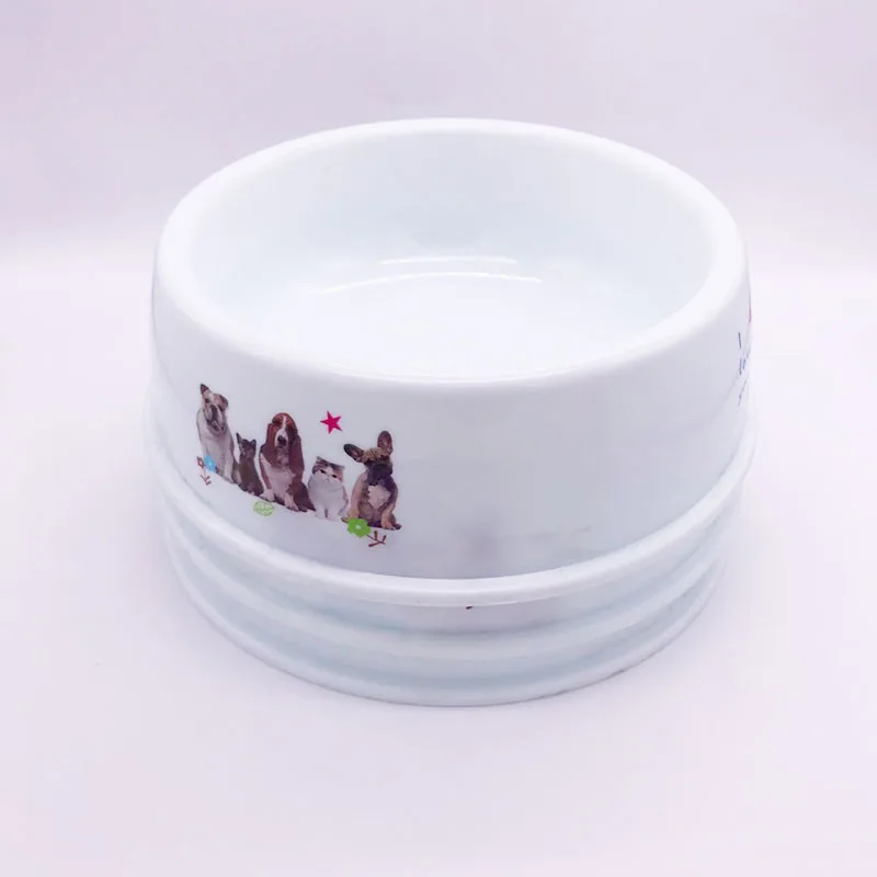Pet Dog Feeding Food Bowls Puppy Lovely Print White Dog Feeder Dish Bowel Cat Bowl Deep Bowl with Large Capacity