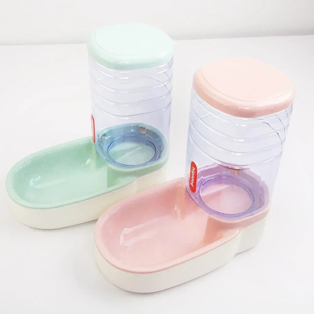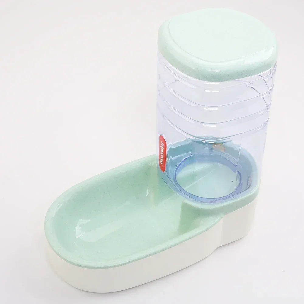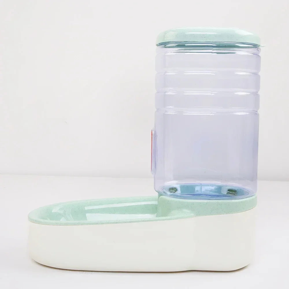 - Name: Automatic Pet Feeder(water dispenser & food feeder) - Material: ABS + PP plastic - Color: Gray, Green, Pink, Blue - Size: - Bottom Length 31cm/12.2'', Width 17cm/6.69'', Height 8.5cm/3.35'' - Bottle Diameter 15cm/5.9'', Height 22cm/8.66''