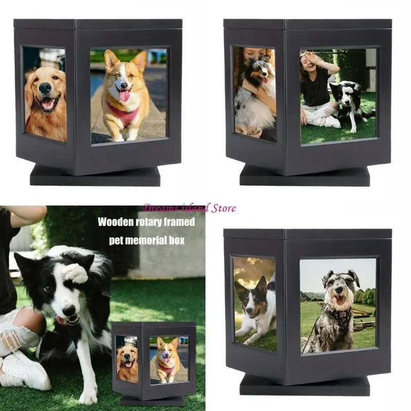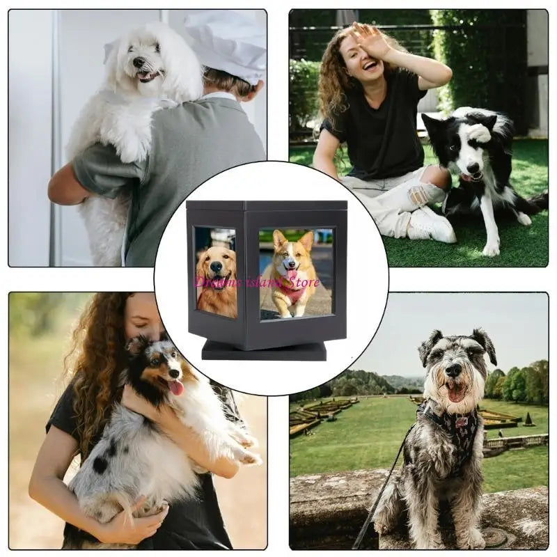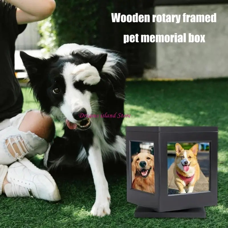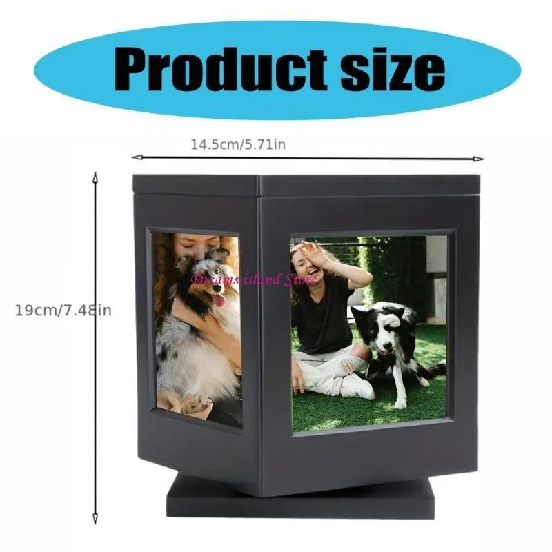 Pet Memory Cremation Box with Rotating Photo Frame Practical Dog Cremation Box HX6C
