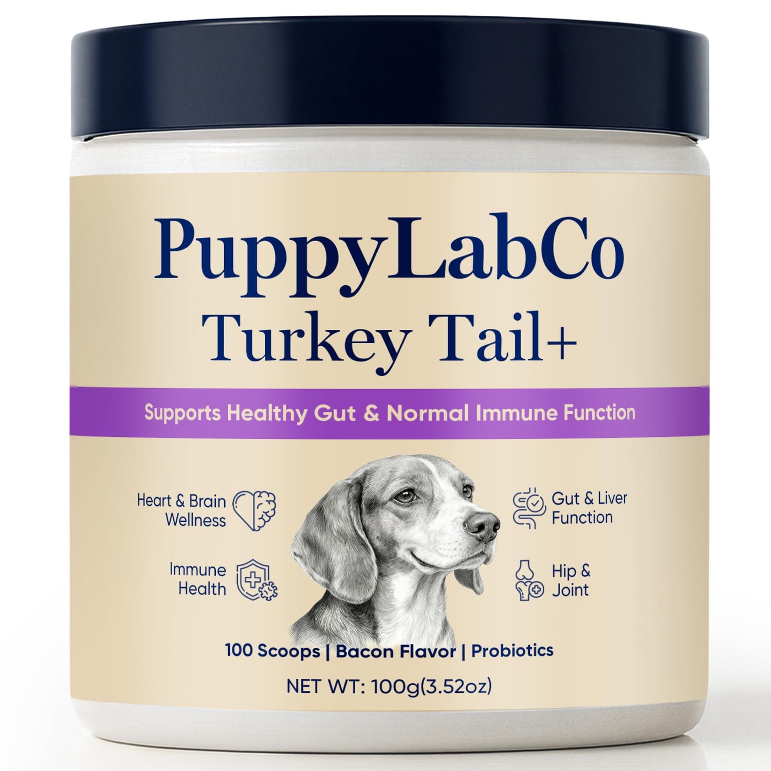 PuppyLabCo Turkey Tail Mushroom for Dogs - Puppylabco Turkey Tail for Gut & Immune Supports, 100 Scoops | Bacon Flavor | Probiotics 100g (1)