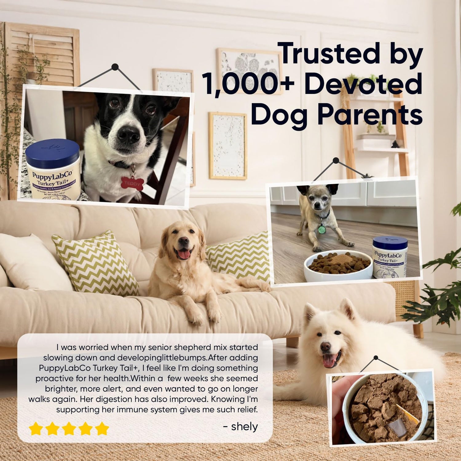 - 【NATURAL DOG VITAMINS AND SUPPLEMENTS】After adding our delicious meal toppers for dogs, pet parents say their senior dogs are playing, running, and acting years younger. puppylabco turkey tail mushroom help restore energy, joy, and immune support.